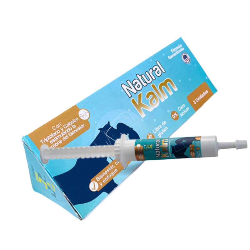 Suplemento alimentico con triptófano, calostro y magnesio que generan bienestar en animales que tienen trastornos en el comportamiento, proporcionando calma en momentos de estrés y ansiedad.
